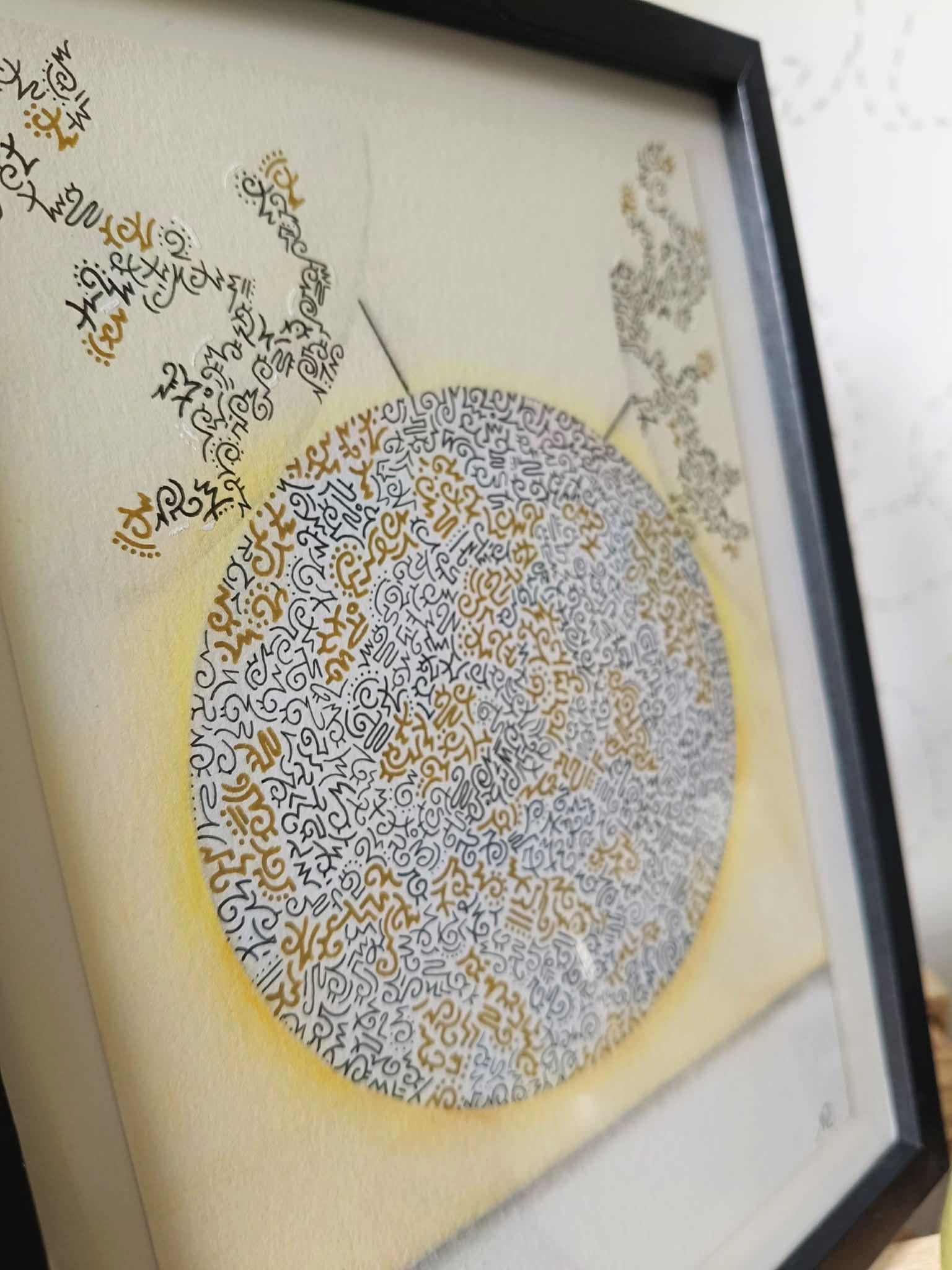 Matériaux : papier à dessin, encre gel et crayon de couleur